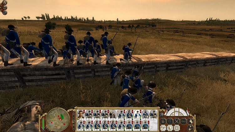 Generally, units that can deploy earthworks are militia and line infantry. Most units have the option between choosing Chevaux de Frise and earthworks. Like chevaux de frise, earthworks can be stretched out by stretching out the regiment deploying them. There is no disadvantage to doing this, and indeed it can be beneficial to do so to increase the defenses of an area. Compared to chevaux de frise, earthworks offer minimal, if any resistance to cavalry, but are far superior as defense against enemy fire. Certain units, particularly light infantry and skirmishers, have also have the option of deploying Fougasse, a primitive land mine that is far more offensive in nature. The lives saved by earthworks over time, though, may prove more valuable than the casualties inflicted by Fougasse depending on the circumstances.