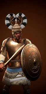 Introduced in the Late Bronze Age, the slashing or ‘grip-tongue’ sword would remain a fixture of battlefields the world over well into the Iron Age, five centuries later. Sturdy enough to cut through armour and flesh alike, the weapon was a favourite of both Achaean and Trojan soldiers, and was carried by everyone from skirmishers to heavy infantry. For archers, a blade was often their last hope of survival when the enemy closed the gap and engaged them at close quarters.