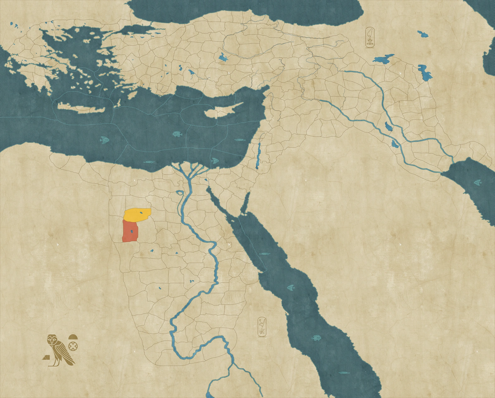 Meshwesh starts the campaign in Wehat Mehtet, its only settlement. They are at war with the neighbouring Libu faction of Farafra, which is slightly weaker. After a brief war, Meshwesh is in a good position to claim abandoned ruins throughout the desert to grow its power base and economy. Its major enemy for the early stages of the campaign is Dungul, the other major Libu faction dominating the southern part of the Western Desert. Between them lie Dakhla and Kharga, two tiny factions that can be either used as diplomatic pawns or conquered with relative ease. If Meshwesh unifies the Libu through diplomacy or force, striking into Egypt is a logical next step. Be prepared for heavy fighting, as diplomacy with the Egyptians is difficult due to differing cultures.