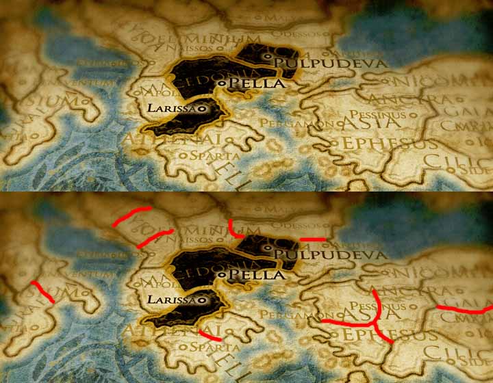As with Total War: Shogun 2, the player will be prompted with decisions. The Creative Assembly is expanding on this mechanic, with each decision leading the player down a particular 'decision path' based on the player's previous decisions. These decisions will then affect the way the campaign plays out, such as turning the Roman Republic into the Roman Empire. Additionally, rather than solely assigning traits to generals and family members as with previous Total War games, the player can now assign traits to armies and navies as they gain combat experience through their years of conquest.