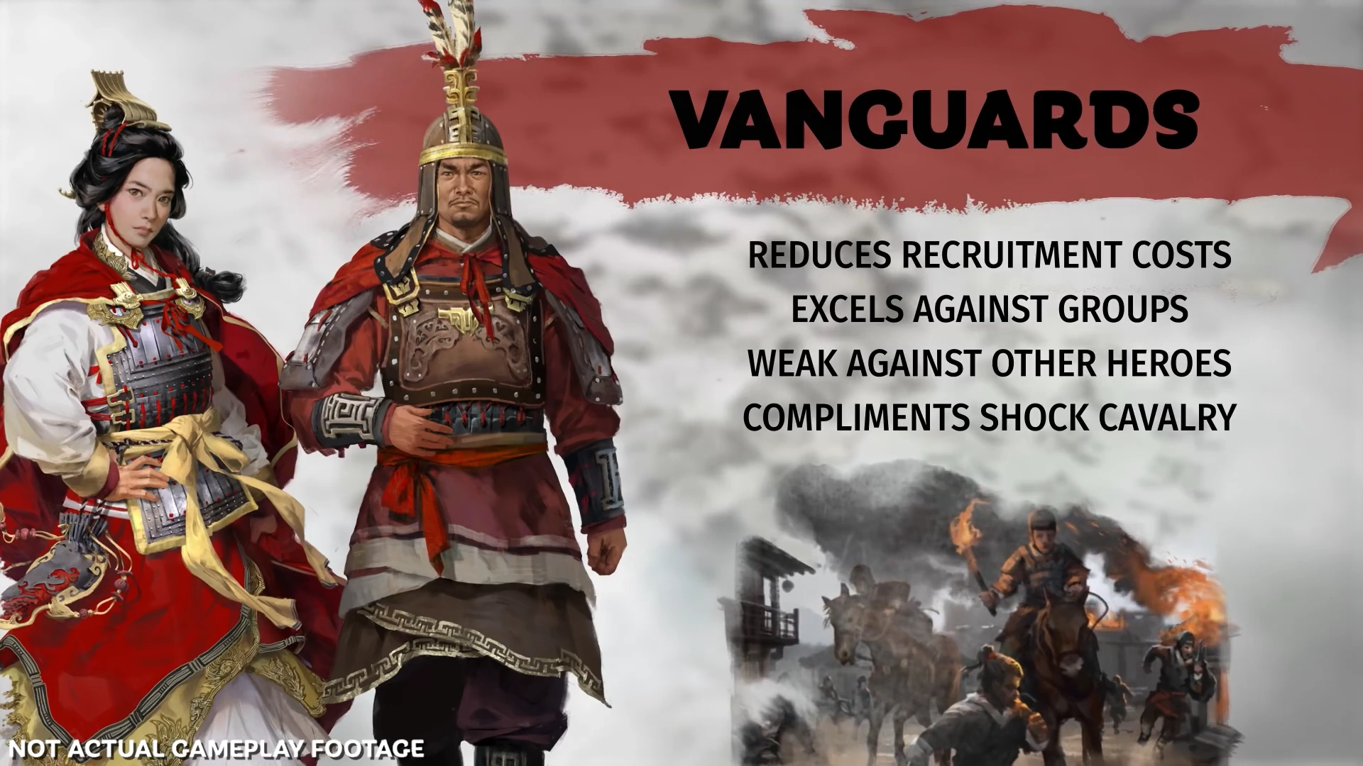 The vanguard excels at shock battle tactics with rapid cavalry charges that can devastate an enemy's flank and can recruit units to an army with greater efficiency, saving vital funds.