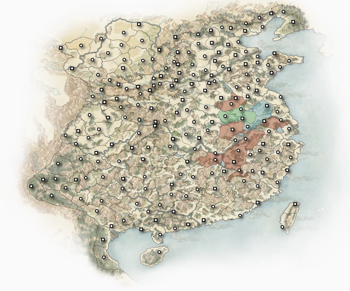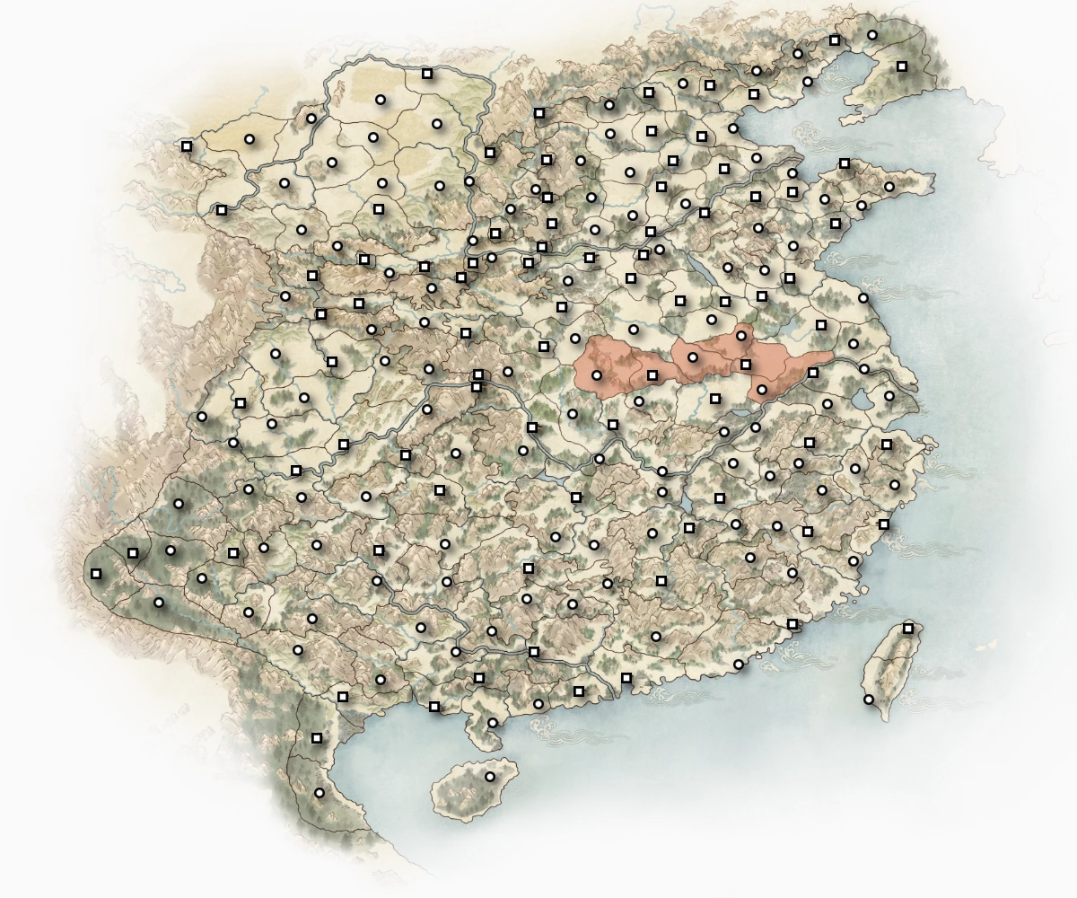 Yuan Shu starts the campaign in Nanyang commandery with only a single county to his name. However, expansion should be relatively easy, as he starts surrounded by the Han Empire, with very few forces stationed near his lands. After defeating Han general Jia Cong and capturing Xinye county, Yuan Shu can expand north and later east, vying for territory with other warlords such as Liu Chong and Cao Cao. He can also strike south against the Yellow Turban Warlord He Yi, or minor warlords such as Cai Mao and Huang Zu. However, he should keep a close eye on his border with Dong Zhuo to the northwest, as he might be inclined to attack Yuan Shu.