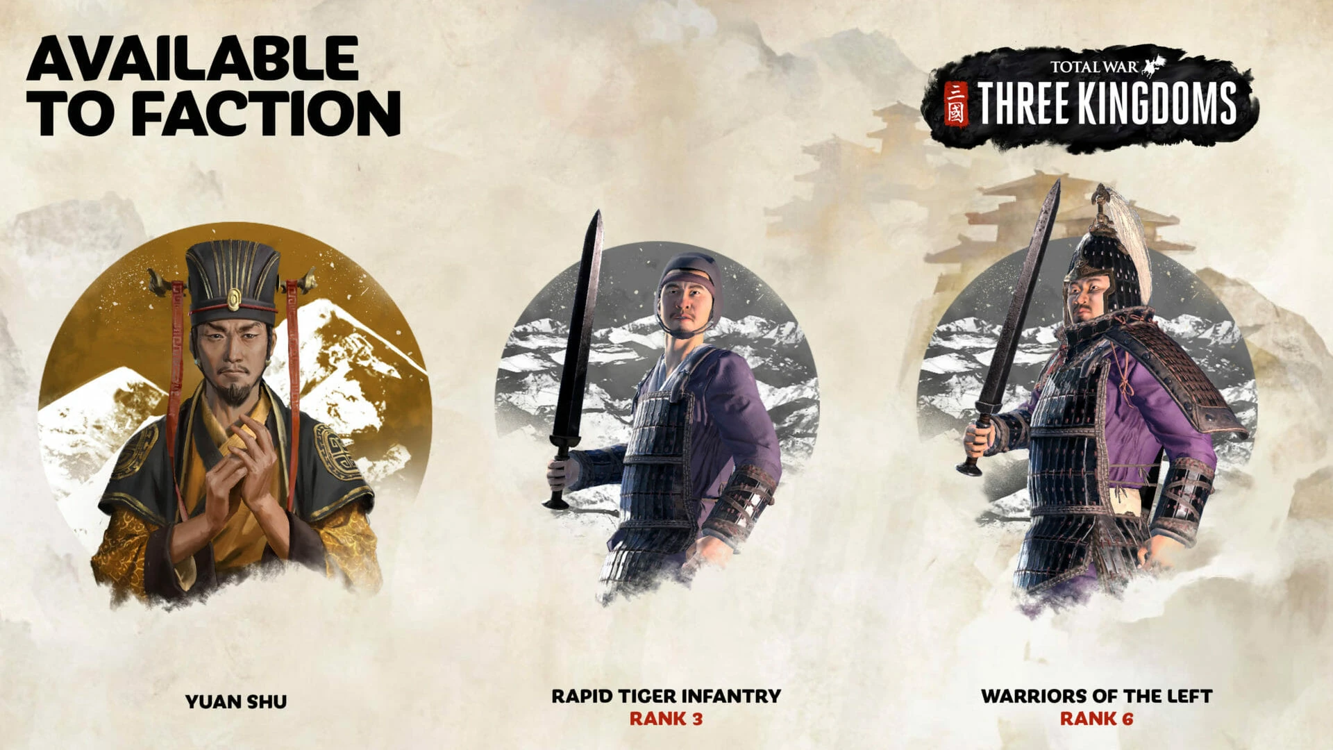 Yuan Shu is a playable faction in Total War: Three Kingdoms. It starts the campaign in central China, located in Nanyang commandery. The faction exists in 190, 194, and 182. Gaining a rank as a duke, king, or emperor, renames the faction to Zhong.